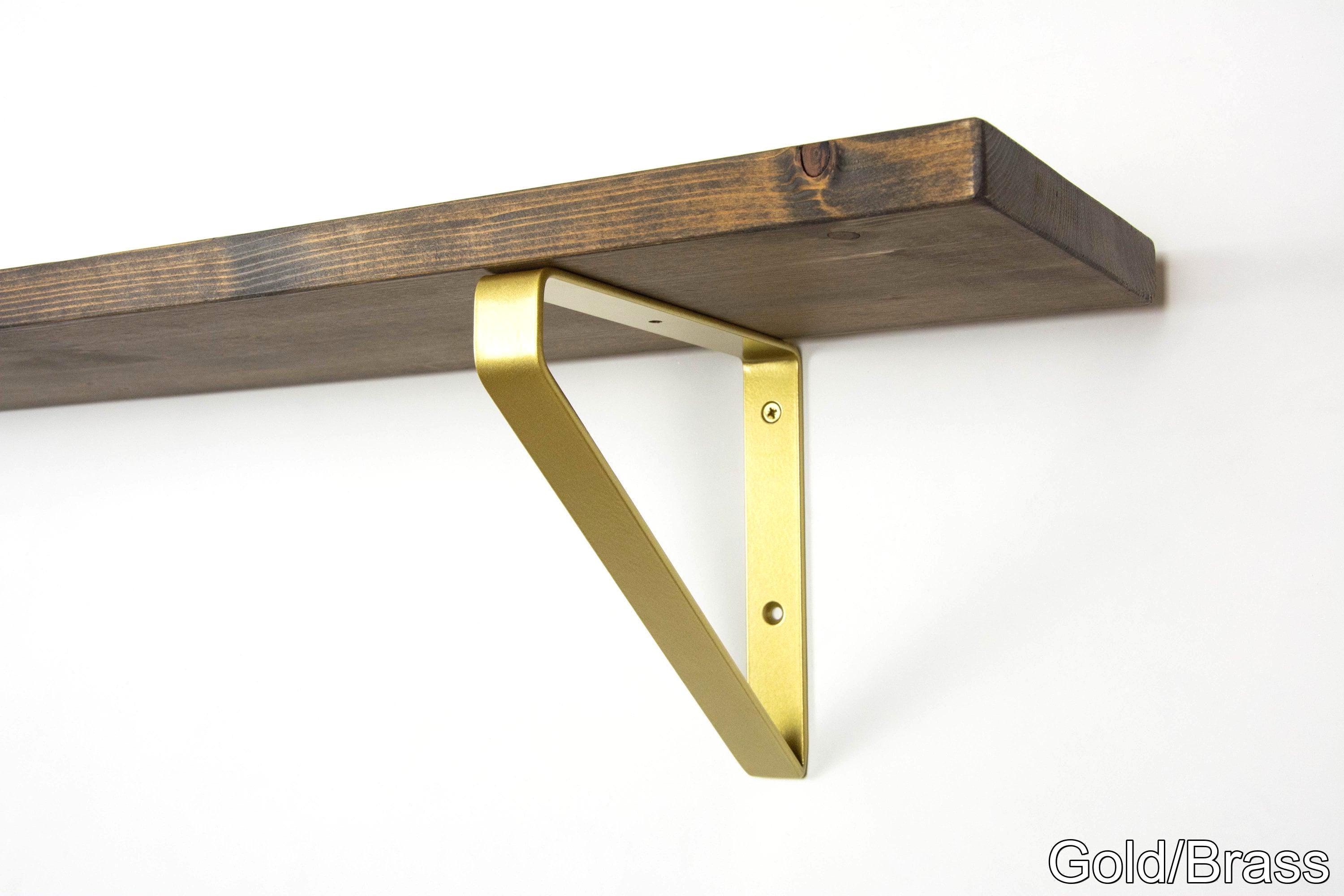 Inverted Powder Coated Triangle Shelf Bracket - Color Pictured Gold/Brass - Heavy Duty Support For Shelf