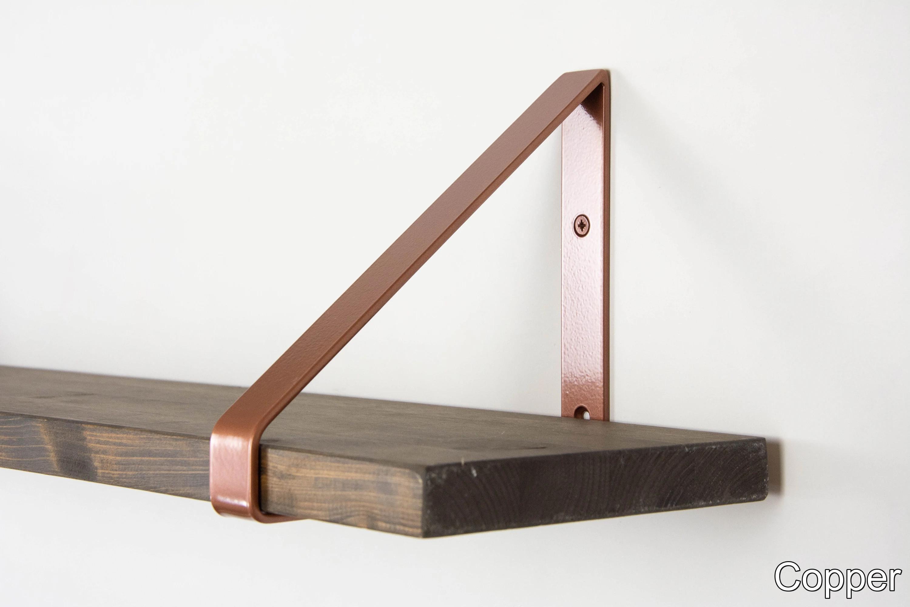 Looking for modern and great shelving options? Our powder coated triangle brackets will make the shelving job done! The color of the brackets in the pictures is Copper.