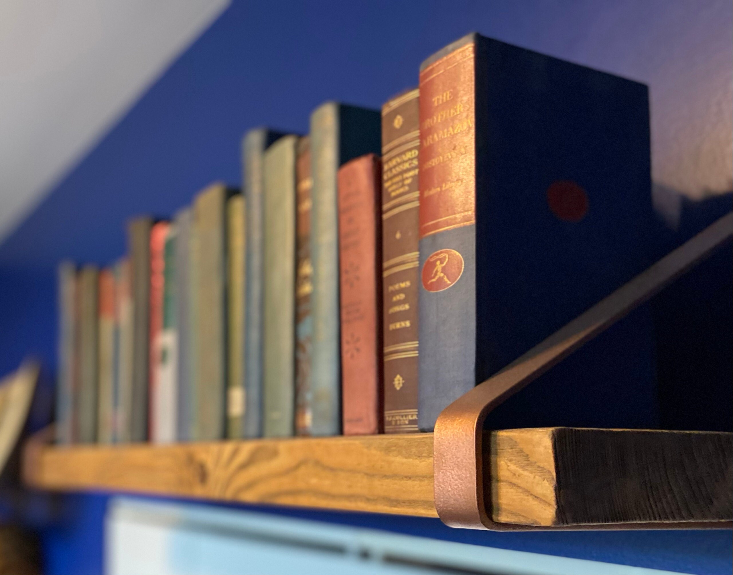 I bought two of these shelves from this seller. They are very simple, but all the components are well made, and the different color options for the wood and brackets is key. I went with a darker wood finish with the copper brackets, and they’re lovely.