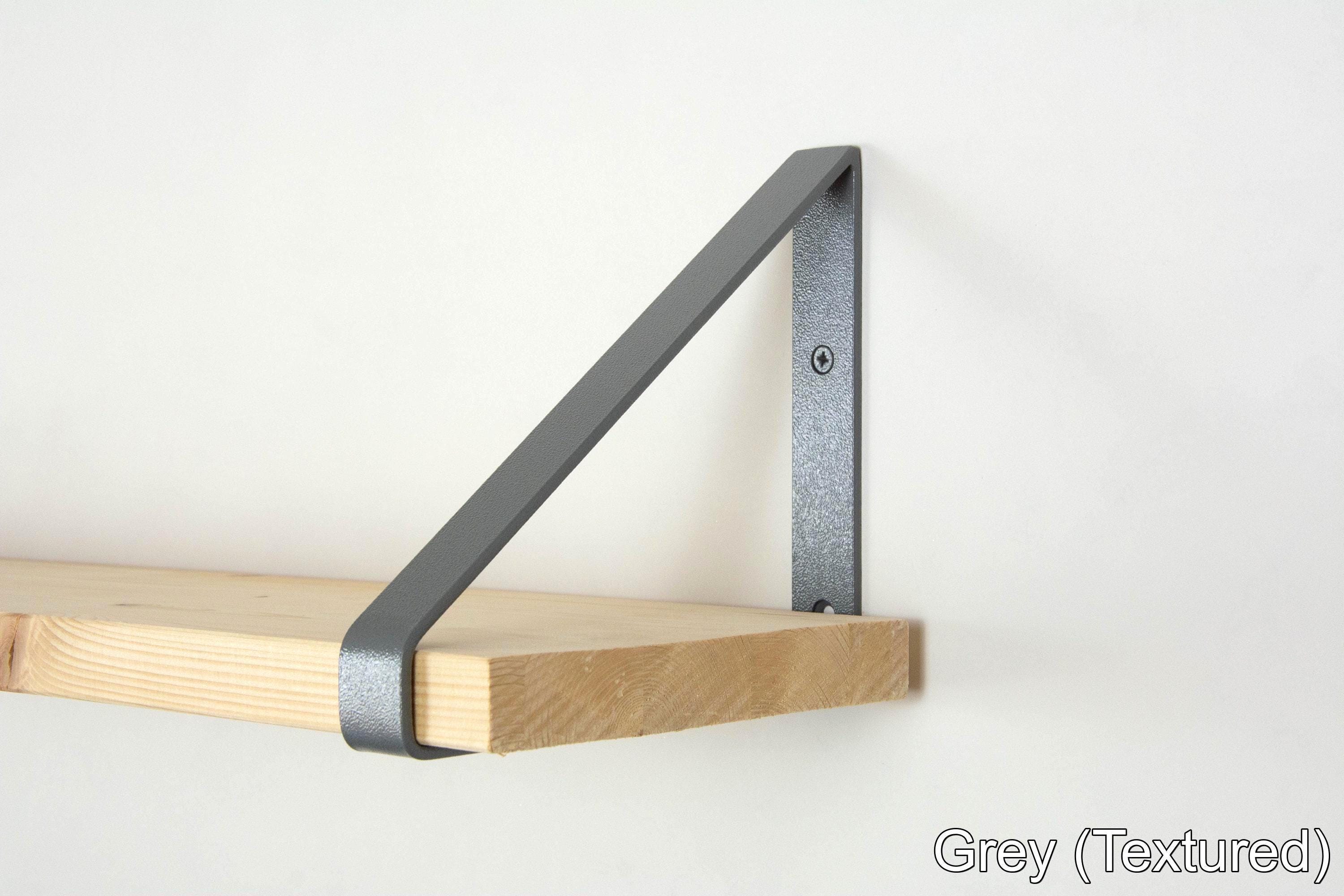 If you are looking for a metal shelf bracket with a unique finish - you found it! The shelf brackets in the pictures are Grey (Textured) color, which gives the brackets an incredible texture.